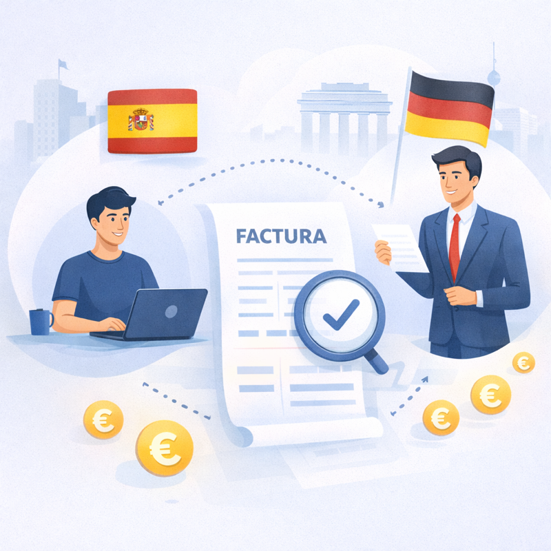 Cuando un autónomo español factura a una empresa alemana, la factura debe cumplir tanto la normativa española como las reglas del IVA intracomunitario.